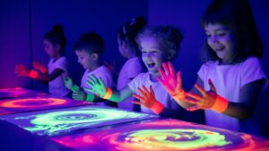 Inside this fun and immersive space, kids create with UV-reactive materials, explore sensory light play and express their wildest ideas in a safe, exciting environment where their imagination becomes the star of the show.
